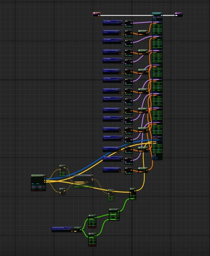Draws the line trace shown in the first image and adds calculated velocity to determine new location for foot