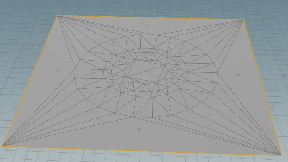 I set up three layers of circles each with increasing radius. These would form the inside, outside bevel, and outer flat edge of the crater. I stored the y-axis value of these circles. Next I triangulated the space between the circles then subsequently remeshed it. (Much like what I did for my geospatial visualization project) Then I created sliders for the previously stored Y-values so I could procedurally reshape the crater.