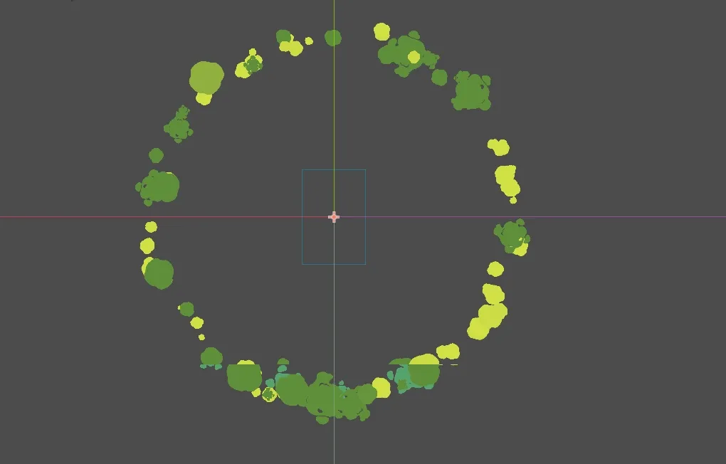 I took the explosion sprite and instanced it on a 2D particle system. I made the particles emit from the shape of a ring as that was the intended area of effect.